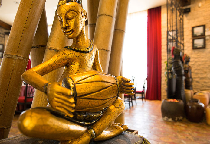 酸辣冬陰功湯,原汁菠蘿炒飯,濃郁咖喱蝦……一道道色香味俱全的泰式美味帶來濃濃的東南亞風(fēng)情,“大兵船”餐廳以赫赫有名的大明水師戰(zhàn)艦為名,致力將異域美食、復(fù)古室內(nèi)裝潢及迷人海景共冶一爐,打造炙手可熱的美味熱點(diǎn),集中發(fā)掘東南亞海域的美食瑰寶,嚴(yán)選新鮮食材,來自泰國(guó)曼谷的主廚自創(chuàng)烹調(diào)手法,炮制出令人耳目一新的地道泰國(guó)美食,享受美味之余,還可欣賞泰國(guó)舞者帶來的萬般柔美的泰國(guó)舞,如此集味覺、視覺于一體的美食之旅,真可謂美不勝收。