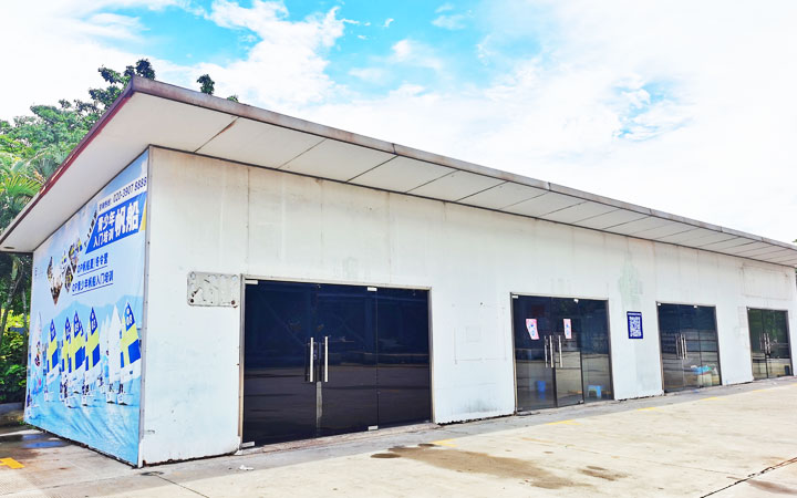 面向維修服務區,配有起重設備獨立的建筑,臨近海邊